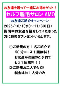 期間中お友達を紹介してくださった方に特典をプレゼントいたします。✋✋✋
